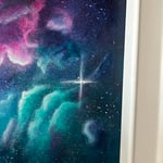 Easel and frame are for display only and are not included by default. However, anyone who purchases one of the 8 Stargazing paintings will receive a follow-up email with links to pre-order an easel or frame so I know how many to order, but this is entirely optional. I had the frame custom made by Michael's, using the Plein Air White Frame. The easel is also from Michael's. Plein Air White Frame by Michael's